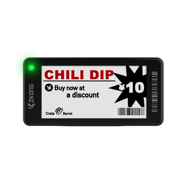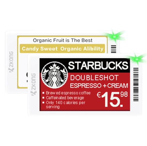 ZKONG ESL, is known for the low power consumption and high visibility, even under direct sunlight. The E-Ink display shows the product information sent from the central system. Because E-Ink displays only use power when updating the information, the labels have a long battery life.